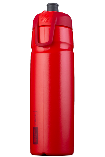 The ergonomic, soft-plastic bottle is easy to squeeze and designed to fit bike bottle cages. An integrated, flexible carry loop provides extra grip for enhanced portability