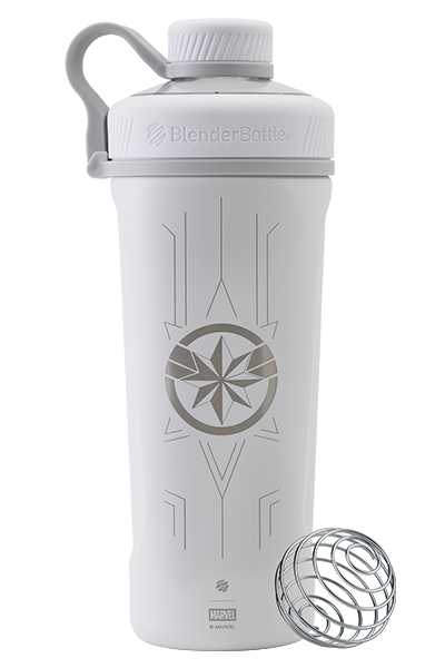 The Marvel Radian Stainless Steel hero shaker bottle features rock-solid insulation, a modern center-mounted spout, a detachable carry loop, and our most secure seal to date.