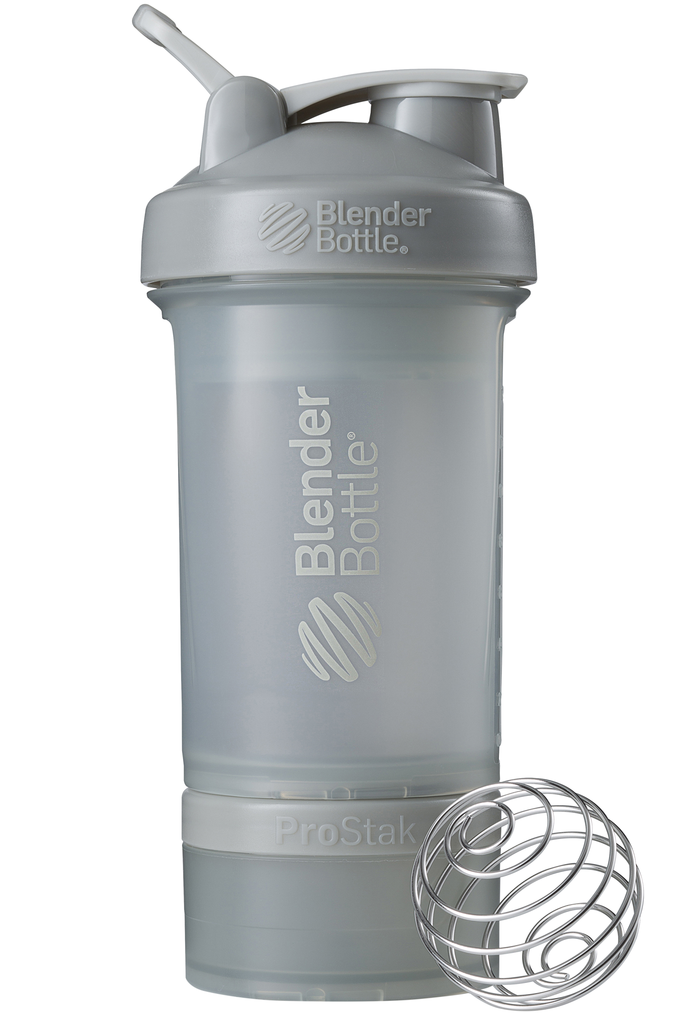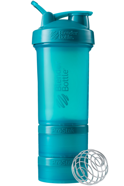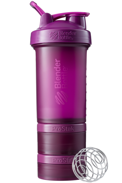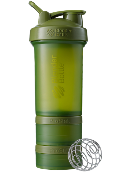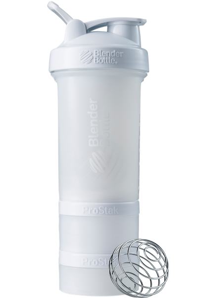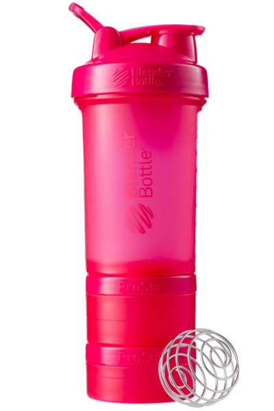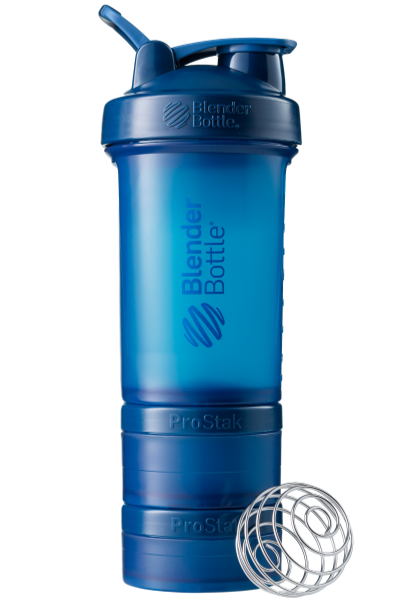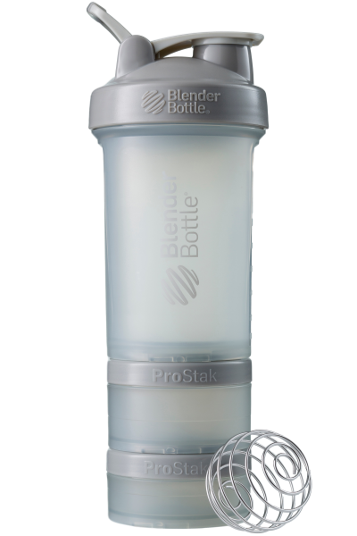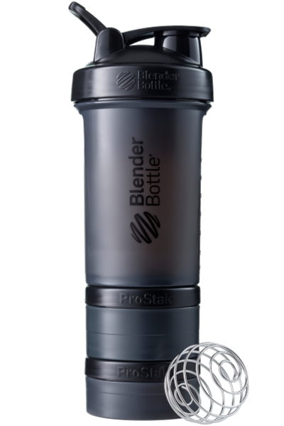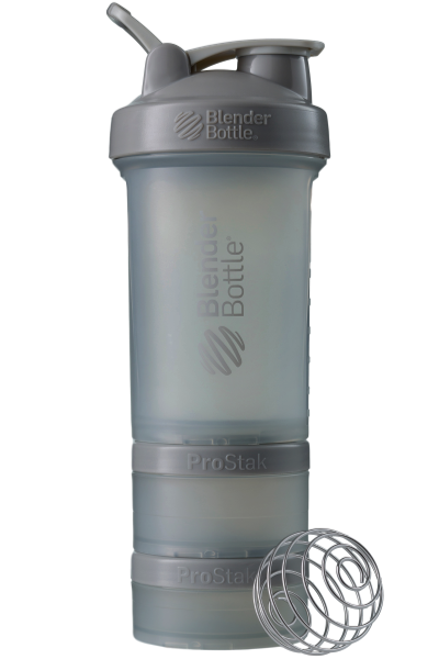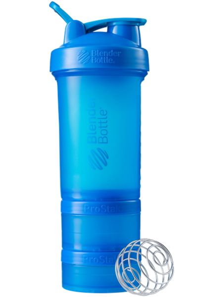 BlenderBottle ProStak is the ultimate all-in-one solution for the serious athlete, making it one of the coolest protein shakers on the market. Featuring the BlenderBall wire whisk and unique Twist n’ Lock containers, the BlenderBottle ProStak allows you to carry supplements, snacks, pills, and liquid -- all in the same bottle. Say 'goodbye' to lumpy protein shakes and 'hello' to smooth, great-tasting drinks. Our patented mixing system uses the BlenderBall wire whisk -- found only in BlenderBottle brand shaker cups -- to mix even the thickest ingredients as you shake. Integrated with the StayOpen flip cap, the adjustable carry loop lets you hold more when your hands are full and offers a convenient place to attach keys while at the gym. The bottle’s screw-on lid and secure flip cap keep your gym bag and car seat dry. With a snug twist of the lid and the assuring 'snap' of the flip cap, you’re ready to roll. The ProStak system’s unique interlocking jars have individual lids, making it possible to carry supplements, snacks, and more -- with or without the bottle. Made from only the highest-quality materials, BlenderBottle brand shaker cups and containers are -- and always have been -- BPA and phthalate free.